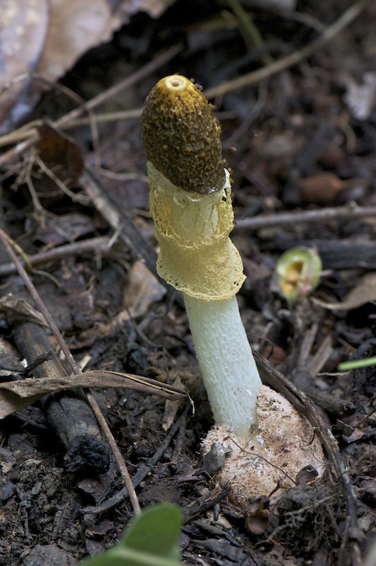 Это сетконоска или диктиофора сдвоенная (Dictyophora duplicata).