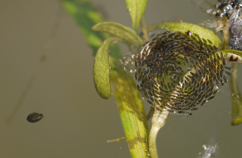 Глазки похоже блики, в тени их нет... таскаю с собой маленькую баночку, если увижу еще раз, домой,домой один раз снимала "роды" водомерки на листике, яйца белые, конечно могут со временем и потемнеть, но вот количество.....