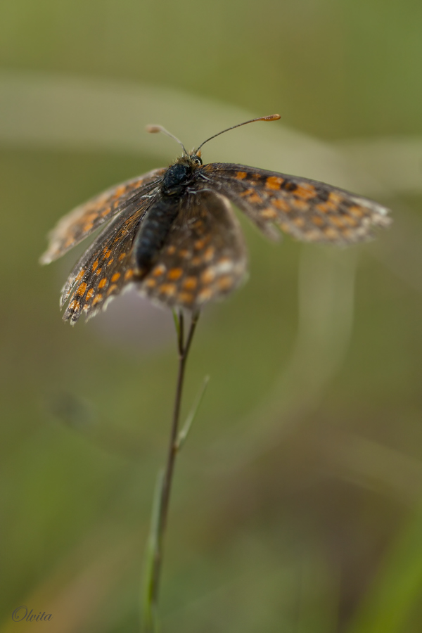 Утренняя малышка... сначала сидела, раскинув крылышки, в ожидании солнышка... потом сложила их, увидев аппарат, но не улетела, лениво-сонно любопытствуя:) Жаль, росы в то утро не было, на дождь...который нас обошел стороной всё-таки, как всегда.