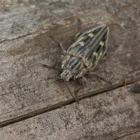 В двадцати метрах от места съемки в меня врезалась златка и упала в песок. Решив её запечатлеть на естественном фоне, подошел к этой поваленной сосне и обнаружил там еще три мирно сидящих на расстоянии около метра друг от друга Поснимал их отдельно, а когда попытался потревожить, чтобы уместить в 1 кадр - проявили чрезмерную активность: одна улетела, две другие соскочили на землю. Затея не удалась. Четвертая же, которая в меня изначально врезалась, на всем протяжении времени съемки, поджав лапы, пыталась не подавать признаков жизни.