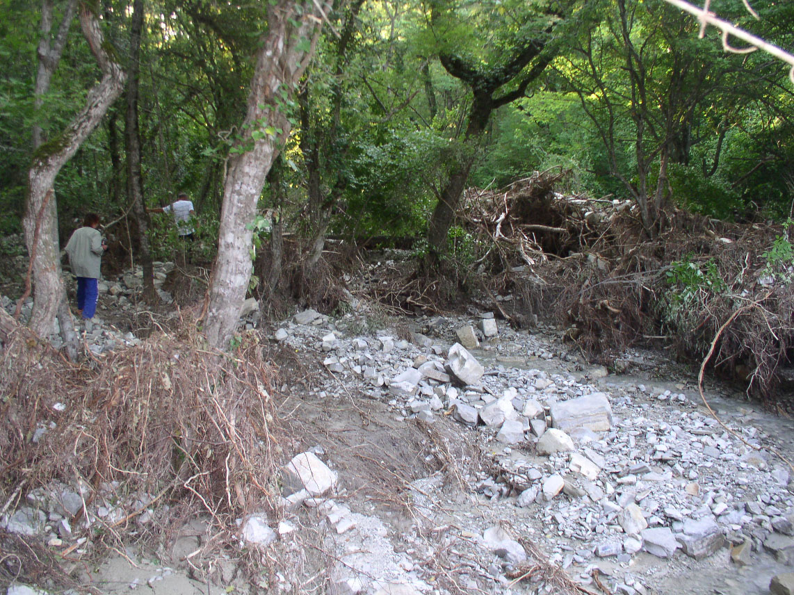 LACH: Стихия - страшная сила, недавно ощутила это на себе. Вот несколько снимков (снимала соседка, у меня не оказалось китового объектива) с разрушениями всего в 150 метрах от моего дома: в результате наводнения, оползней и селевого потока образовался огромный каньон, протяженностью более 1 км, глубиной в отдельных местах до 10 м, шириной до 50 м. А вообще пострадало много домов, было нарушено электро- и газоснабжение, дороги превратились в овраги и завалы.