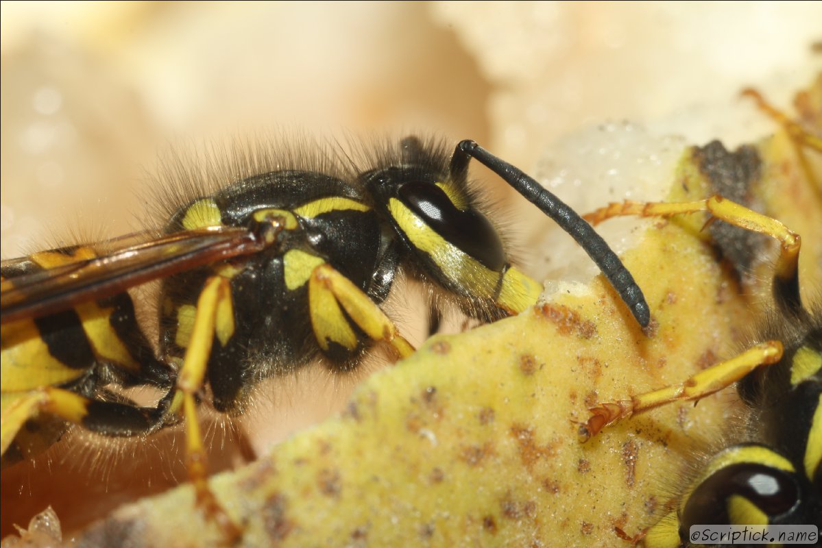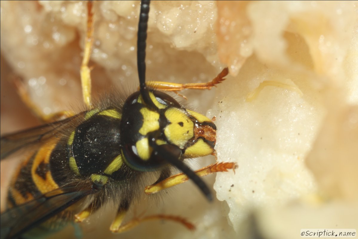 Осы слетелись на заранее приготовленную грушу