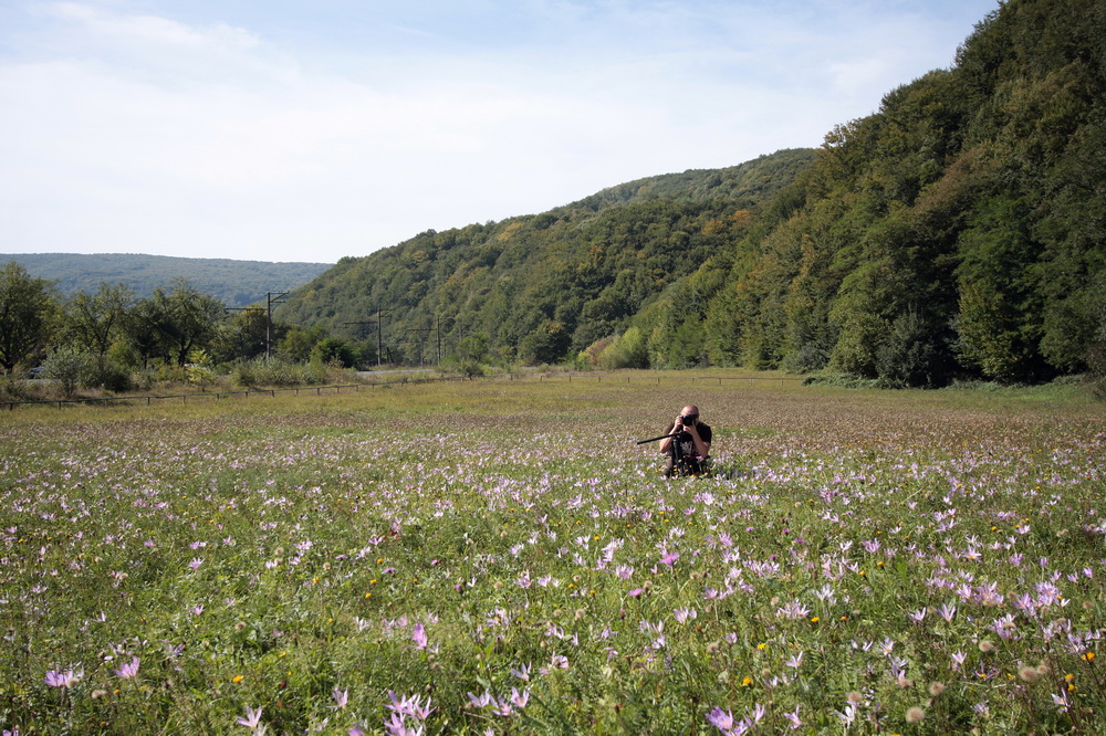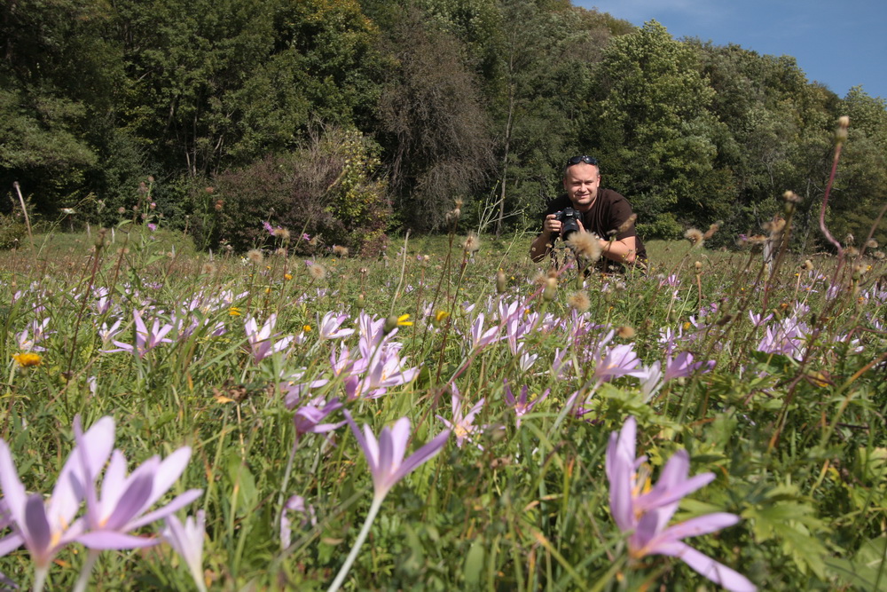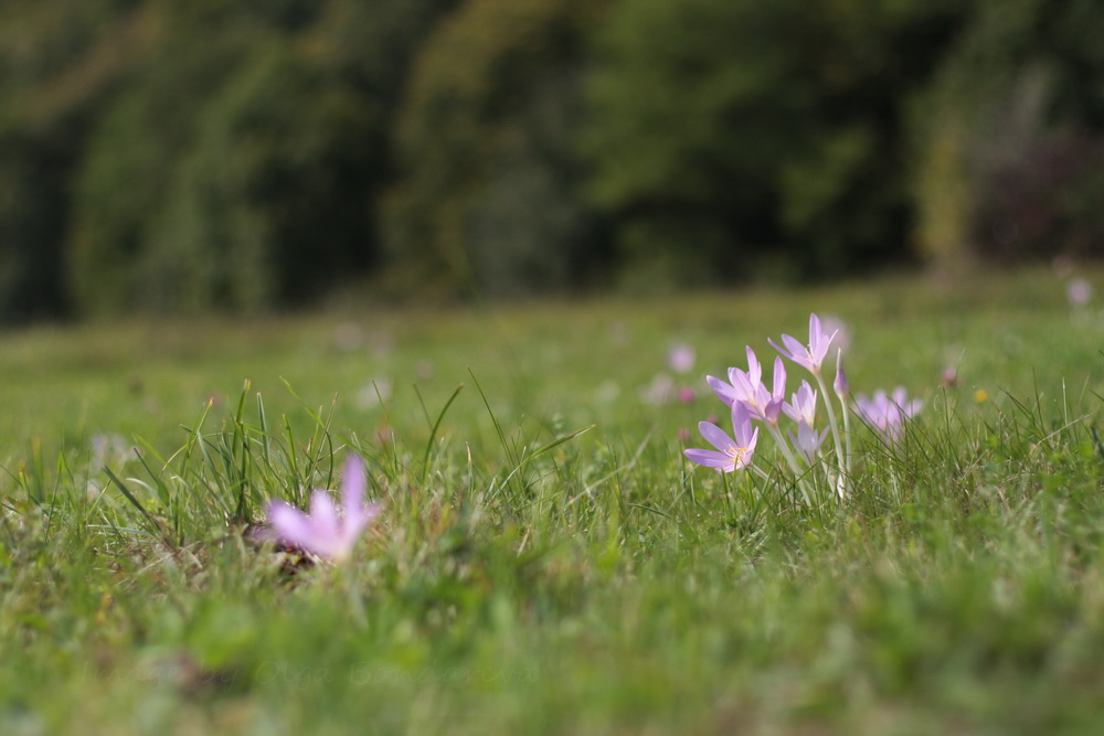 Крошечный лужок, заботливо обнесённый оградой, стал домом для тысяч или миллионов безвременников (Colchicum autumnale).