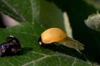 А, вот оно как, спасибо буду знать. У нас тут "бабье лето" началось. И, похоже для коровок это массовое явление. На одном листе до десяти вылупляющихся жуков, причем двух-трех разных видов. Наверное, у них это последний шанс
