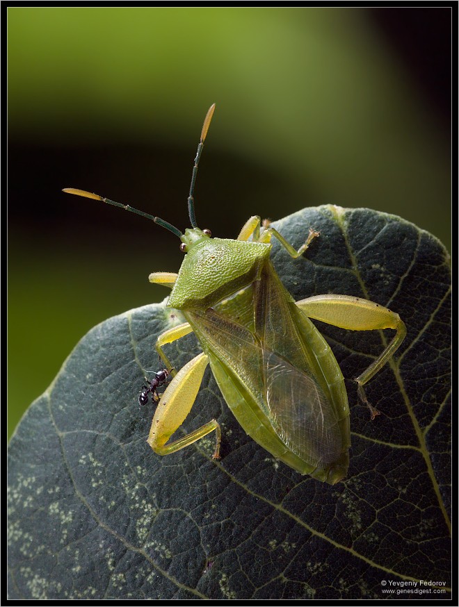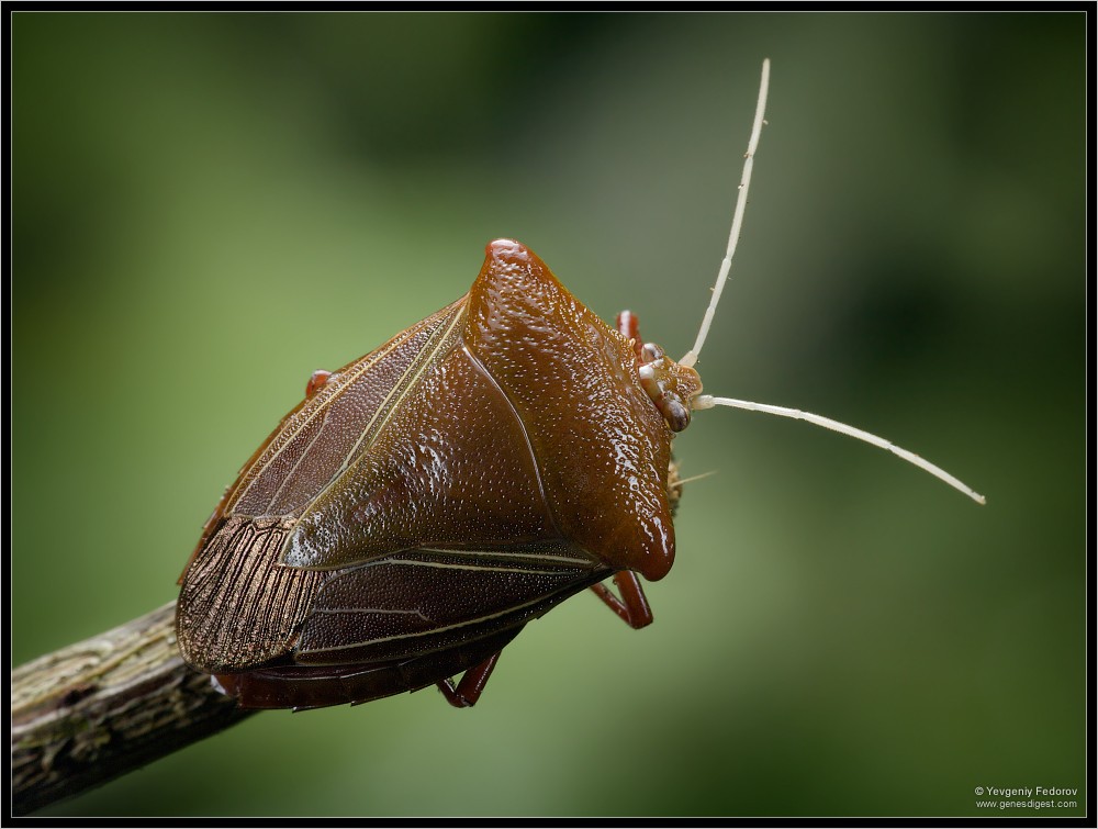 Через сорок минут я уже на знакомой лесной дороге и понемногу продвигаюсь в сторону руин. Как всегда, попадается масса всеразличнейших клопов, и время от времени приходится задерживаться, чтобы сфотографировать очередного. Во время одной из таких фотосессий лошарик становится инвалидом: одно из базовых шаровых креплений ломается в области «шейки», вероятно, из-за некачественной стали. Однако даже с единственной телескопической «шеей» лошарик продолжает верно служить: без него не удалось бы получить многие ракурсы и фоны для моих макрообъектов.