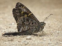 Наблюдая эту забавную дуэль, я вдруг замечаю, что уже начинают сгущаться сумерки. Напоследок обхожу еще раз вокруг озера. Черепаха, как будто решив попрощаться, вдруг выныривает совсем близко от берега и смотрит на меня с довольно надменным выражением. Машу ей рукой, и она тут же снова ныряет. На обратном пути, рядом с гнездом синей осы, попадается сидящая прямо на дороге знакомая длинношпорая толстоголовка. Хотелось сохранить хотя бы эту одежду относительно чистой, но ничего не поделать — чтобы сделать кадр в нужном ракурсе, приходится снова ложиться в пыль. Одно утешает — одежда испачкана не зря, бабочка позволила себя запечатлеть.