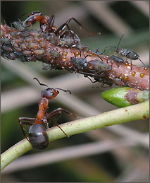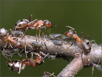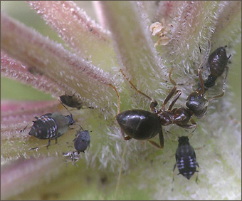 Даже у таких завзятых хищников, как рыжие лесные муравьи, падь тлей составляет 50-60% всей пищи, а у миролюбивого черного садового муравья и вовсе может доходить до 90%. Не удивительно, что муравьи так ухаживают за тлями - без них муравейник просто не сможет выжить.