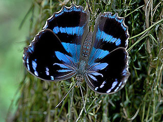 бабочку (нимфалида мисцелия фиолетовая). Уже не раз снял её с закрытыми крыльями (покровительственная окраска, неинтересно), а вот с раскрытыми не вдруг